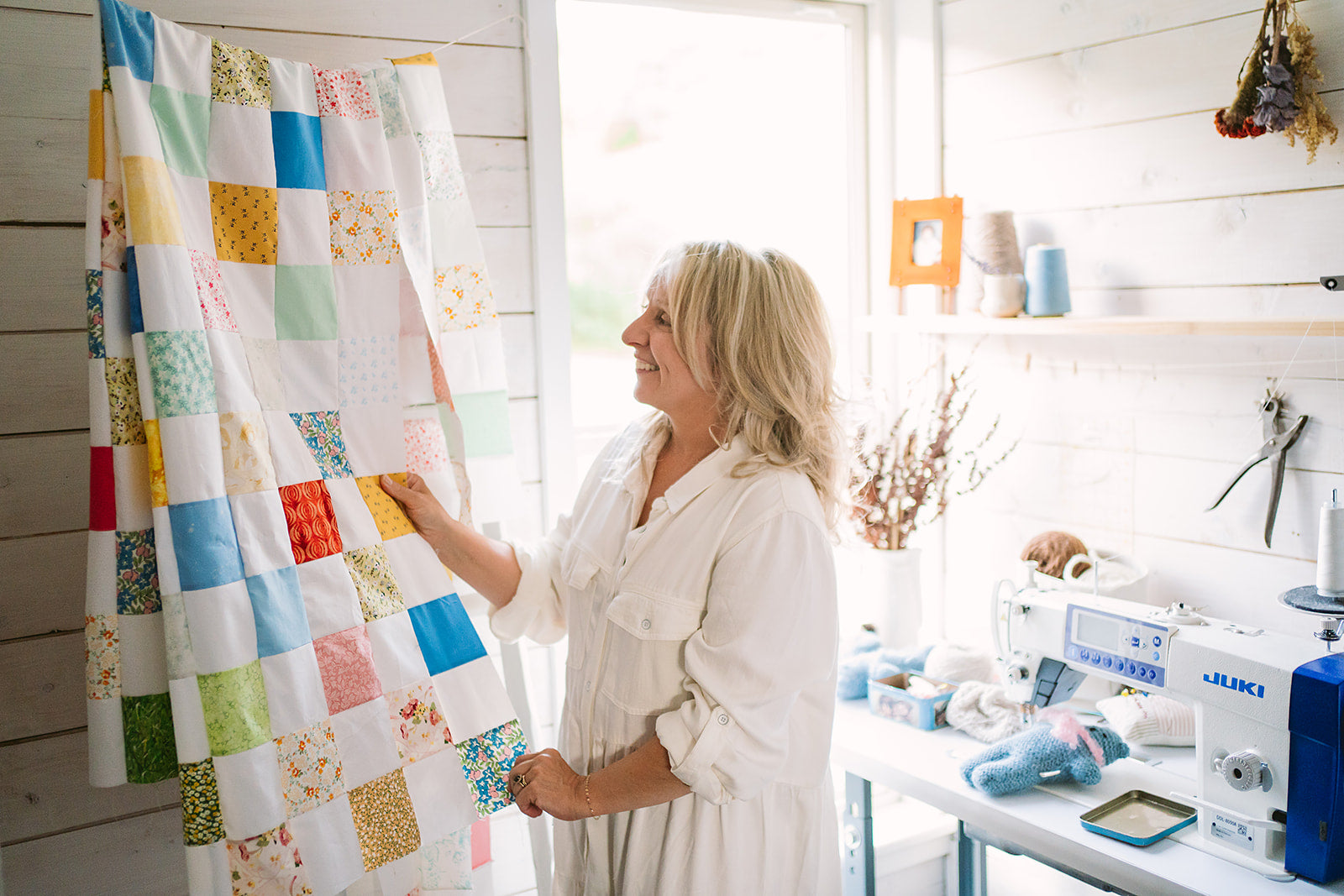 Our Willum Quilts is a modern take on a traditional Newfoundland quilt. It is now a Wooly Tops customer favourite and something I love to make. Each quilt piece is hand cut and individually sewn in a random pattern of colour and white blocks ensuring that each quilt is a ‘one of a kind’ creation.